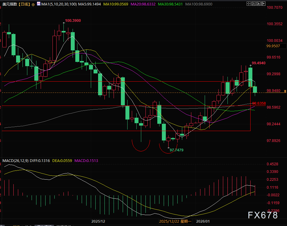 (美元指数日线图,来源:易汇通)北京时间15:30,美元指数现报98.87。